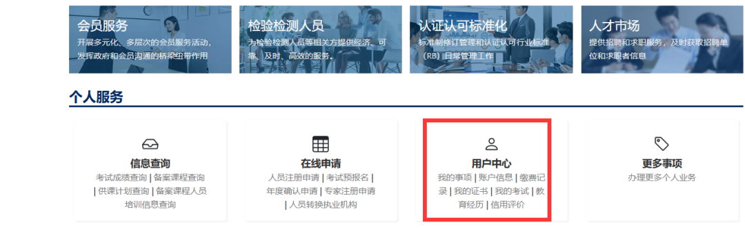 1.登录“CCAA综合服务平台”(https://service.ccaa.org.cn/),点击首页下部“用户中心”,在“我的事项”中可以看到待整改的事项。